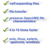Since 1988 FCX has been the OpenVMS compression software of choice for companies seeking to embed data compression in their OpenVMS production operations. Today, FCX is available for a wide range of platforms: OpenVMS, Windows, AIX, HP-UX, Solaris, and Linux.FCX provides the speed, effectiveness, reliability, and completeness necessary to achieve significant performance and cost improvements in a broad range of commercial and government applications.Speed - 4 to 10 times faster than shareware or other productsEffectiveness - up to 90% reduction in file sizesReliability - solid performance day in and day out with no surprisesCompleteness - supports all data and file types; includes features found nowhere elseFCX runs on thousands of computers every day, providing real benefits to the companies that use it.Save thousands of dollars on the cost of disk storageSave time and money on data transfersStreamline operations between central and satellite locationsSpeed up access to archived dataCreate file databases for managing baselined or related filesExchange files between systems