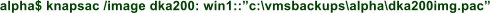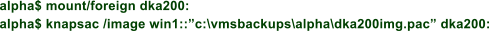 ExamplesThese examples show how to save and restore OpenVMS disks and files to/from a Windows or Linux computer.In the following examples the OpenVMS system is node “alpha”, the Windows computer is node “win1”, and the Linux computer is node “lin1".VMS Disk Image Save to a Windows computerVMS Directory Save to a Linux computerVMS Disk Image Restore from a Windows computerVMS Directory Restore from a Linux computer
