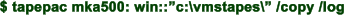 apollo $ tapepac mka500: gemini::"c:\vmsbutapes\" /log/copy